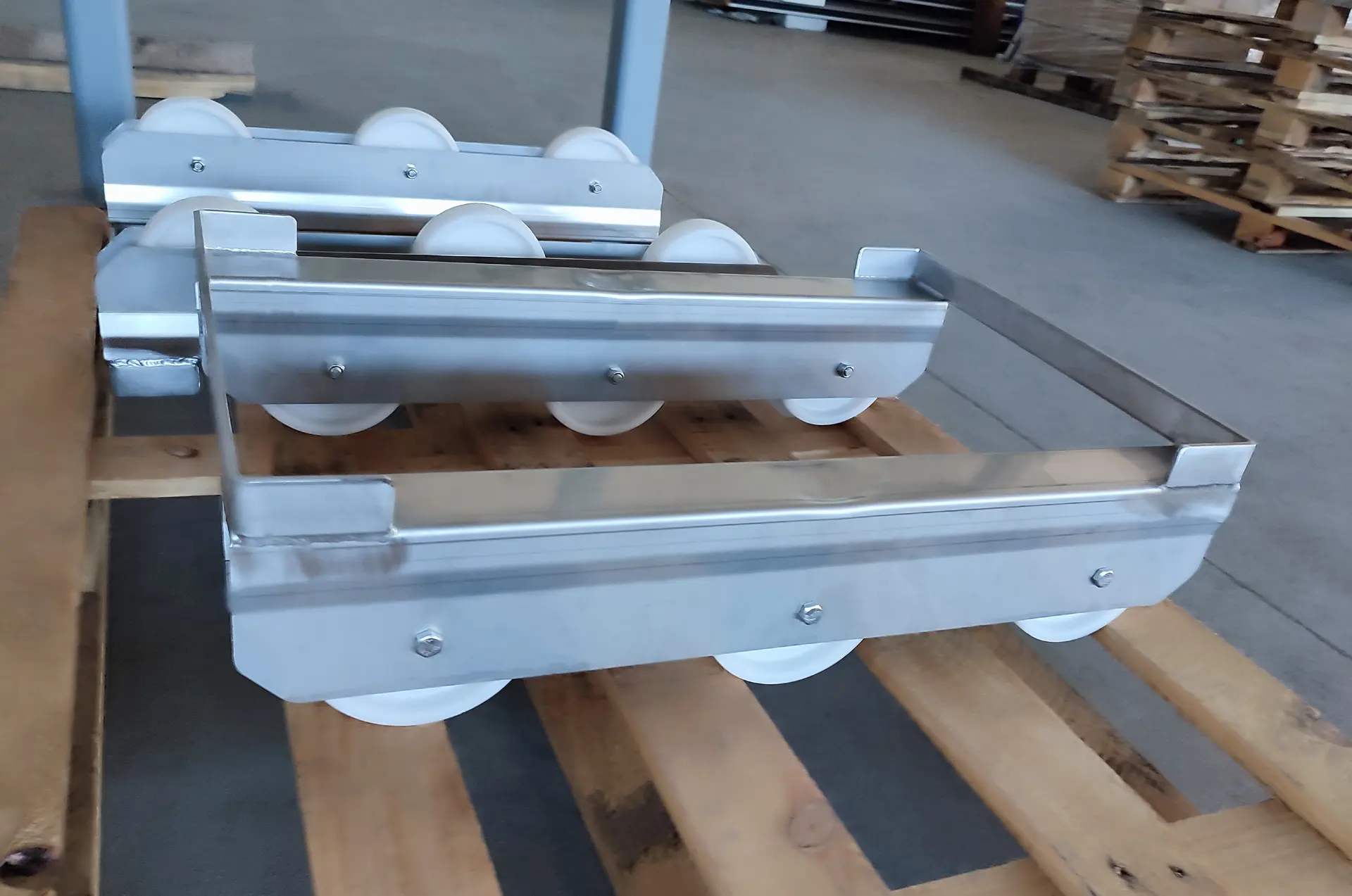 Wózki wędzarnicze wykonujemy z wysokogatunkowej stali nierdzewnej kwasoodpornej. Konstrukcja zapewnia równomierne cyrkulowanie powietrza i pary w komorach wędzarniczych, co przekłada się na równomierny proces wędzenia. Oferujemy wózki jedno- i dwuramowe, dopasowane do rozmiarów wózków stosowanych w najpopularniejszych systemach wędzarniczych.